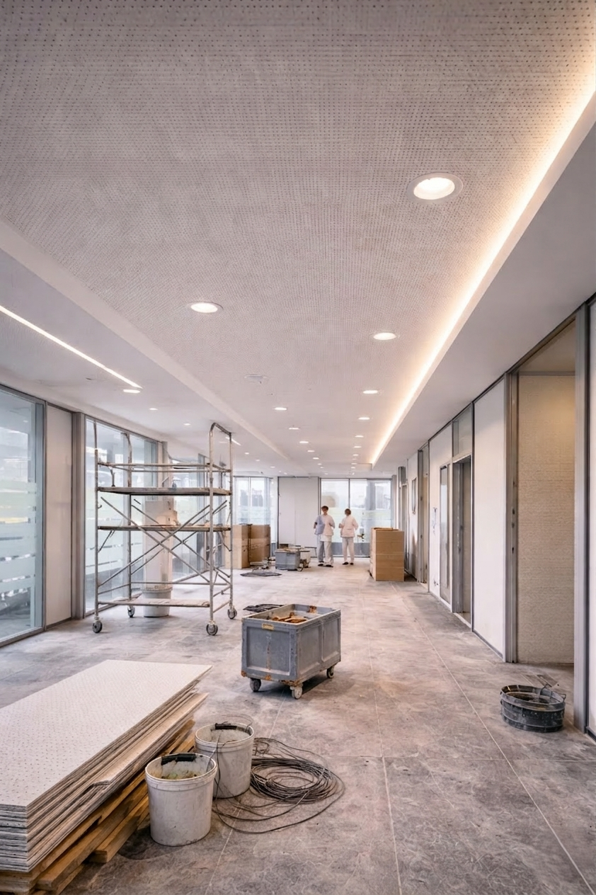 Die Decke ist das komplexeste Bauteil im modernen Innenausbau und fungiert als Schnittstelle für Akustik, Licht und Klimatechnik. Wir projektieren und montieren leistungsstarke Deckensysteme – von schallabsorbierenden Akustikdecken über hygienische Metalldecken bis hin zu funktionalen Rasterdecken für den Großobjektbau. Unser Fokus liegt dabei auf der synergetischen Verbindung von Ästhetik und technischer Performance, um die Nachhallzeiten zu optimieren und die Aufenthaltsqualität signifikant zu steigern. Mit präziser Ausführung und modernster Systemtechnik schaffen wir Deckenlandschaften, die höchsten architektonischen Ansprüchen gerecht werden.